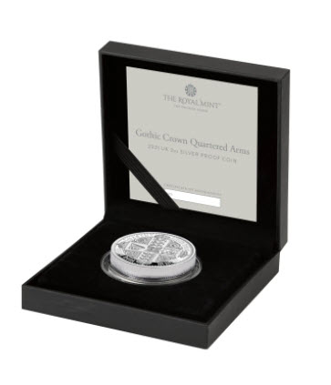 グレートブリテン2021年ニューゴシッククラウン2オンス5ポンド銀貨オリジナル箱付き